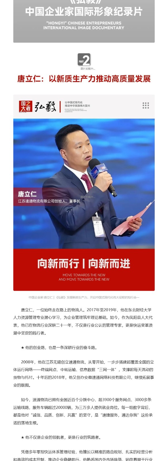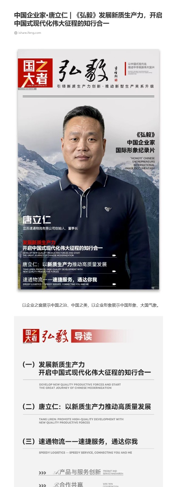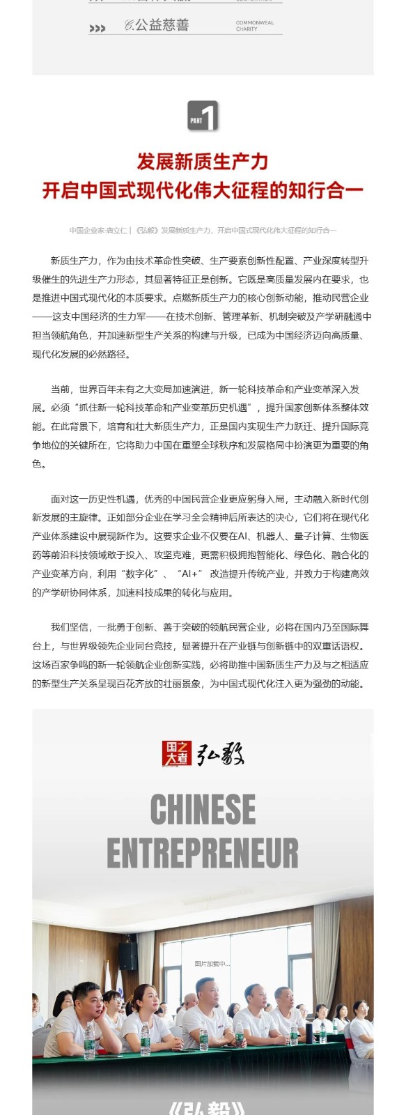 中国企业家·唐立仁 | 《弘毅》发展新质生产力,开启中国式现代化伟大征程的知行合一